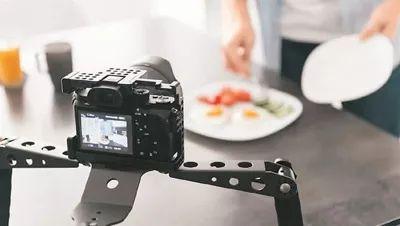 Vlogger在录制食品烹饪视频博客。资料图片