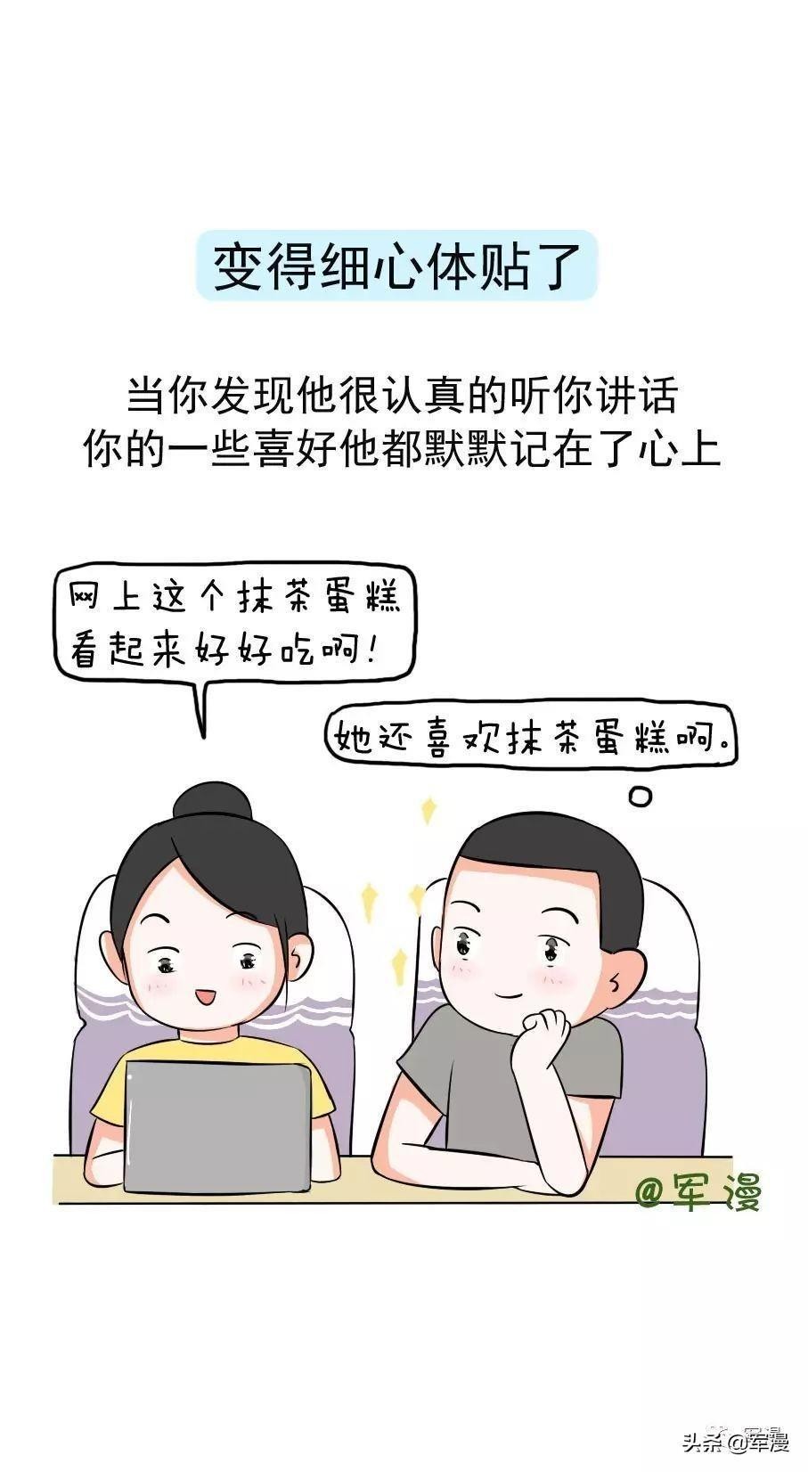 变得细心体贴了:当你发现他很认真地听你讲话,你的一些喜好他都默默记在了心上。