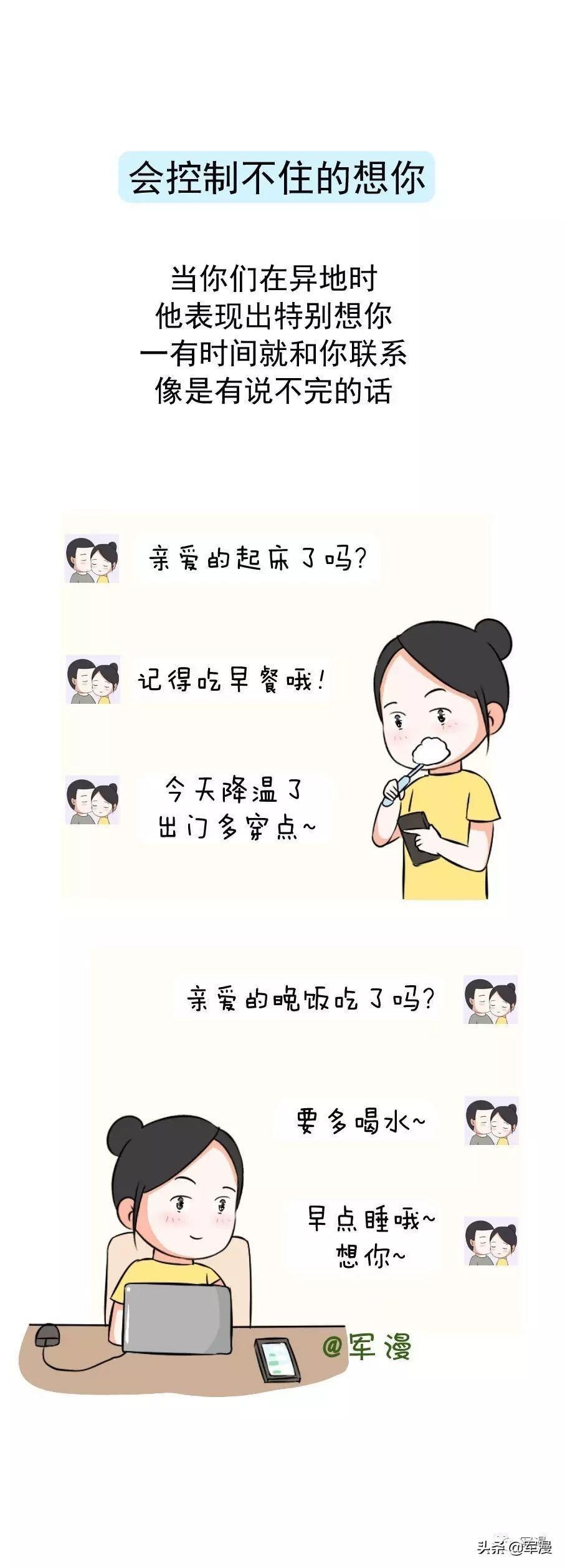 会控制不住地想你:当你们在异地时,他表现出特别想你,一有时间就和你联系,像是有说不完的话。