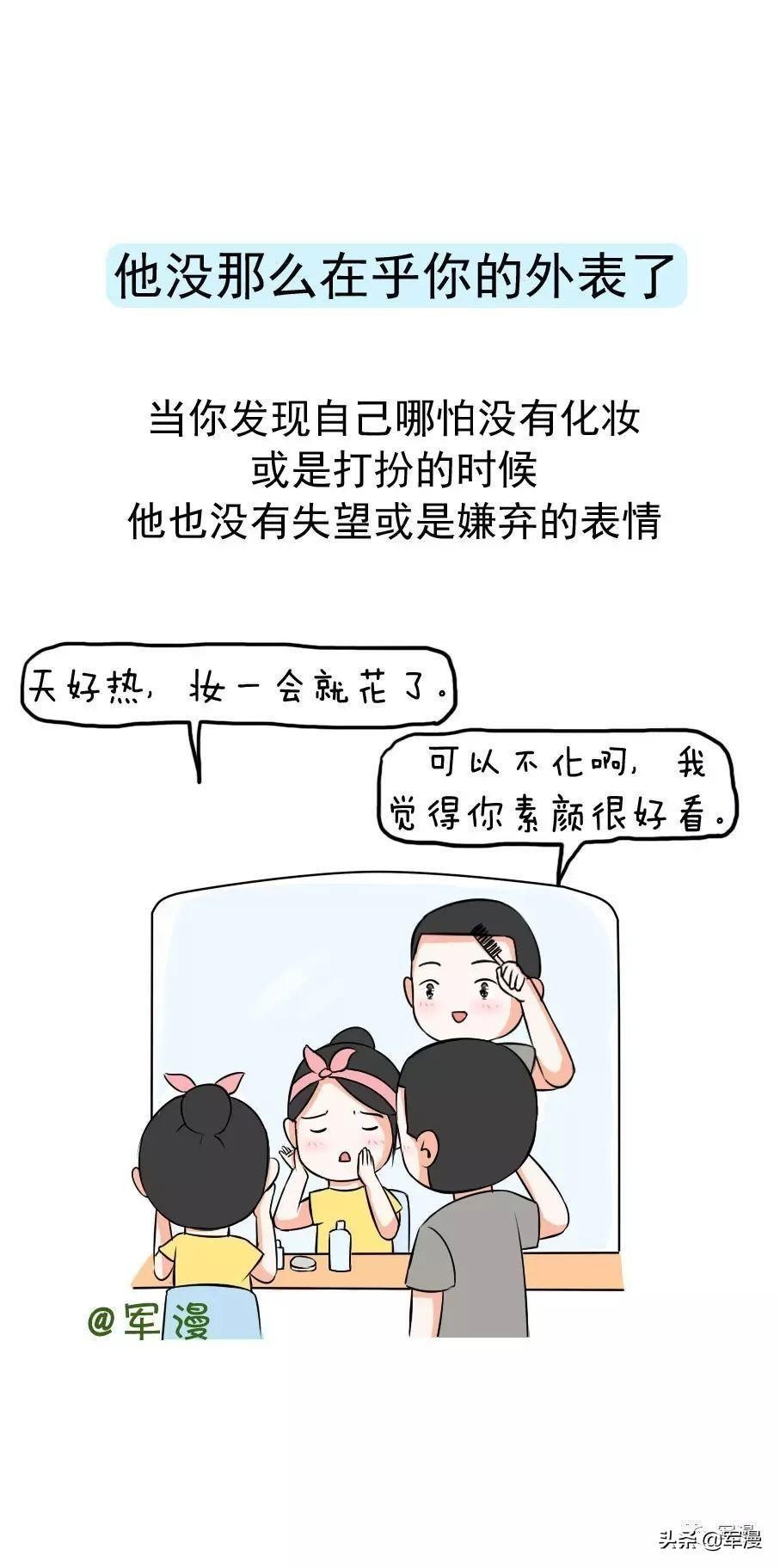 他没那么在乎你的外表了:当你发现自己哪怕没有化妆或是打扮的时候,他也没有失望或是嫌弃的表情。