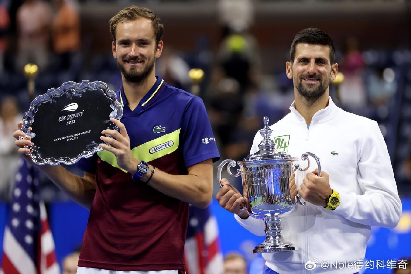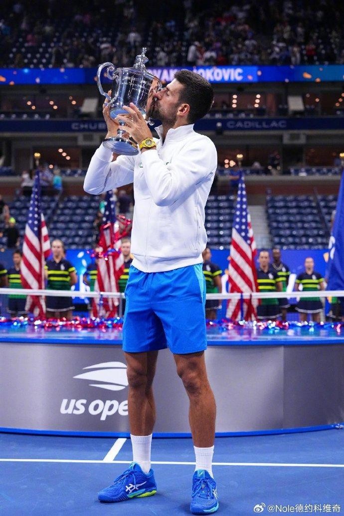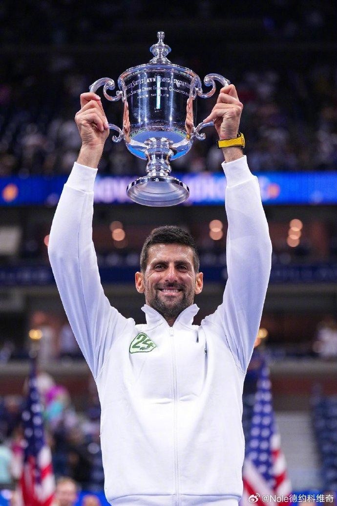 赛后,德约科维奇在个人微博上晒图并配文“24”,庆祝自己第24次夺得大满贯。
