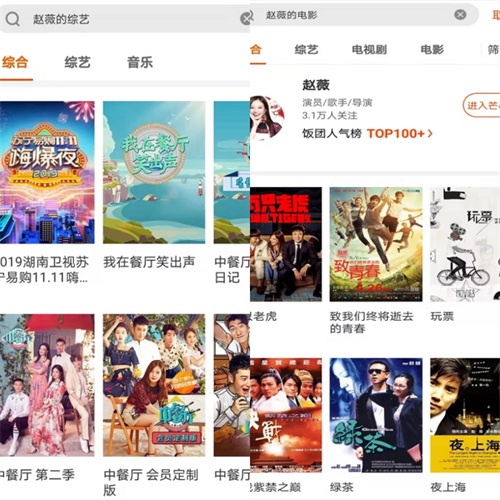 当晚在芒果TV上,关于“赵薇的电视剧”仅剩一部《老房有喜》。不过,搜索“赵薇的综艺”“赵薇的电影”等词条,其相关作品均存在。8月27日上午9时,每经记者再次在芒果TV上搜索“赵薇”,则显示“未找到相关视频”