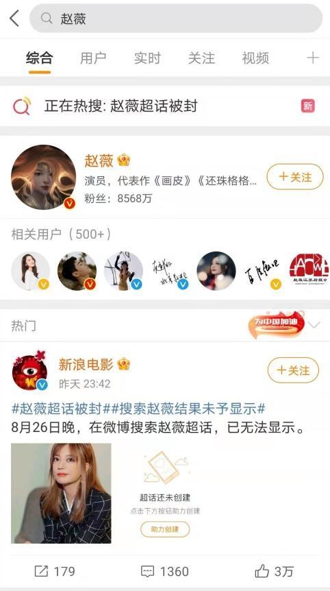赵薇超话被封 图片来源:微博截图