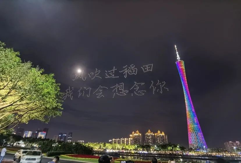 500架无人机在珠水之畔缓缓升起,借助科技的方式开展了一场光影缅怀活动,以此深情悼念这位一生耕耘的巨人,寄托全社会对袁老的哀思。