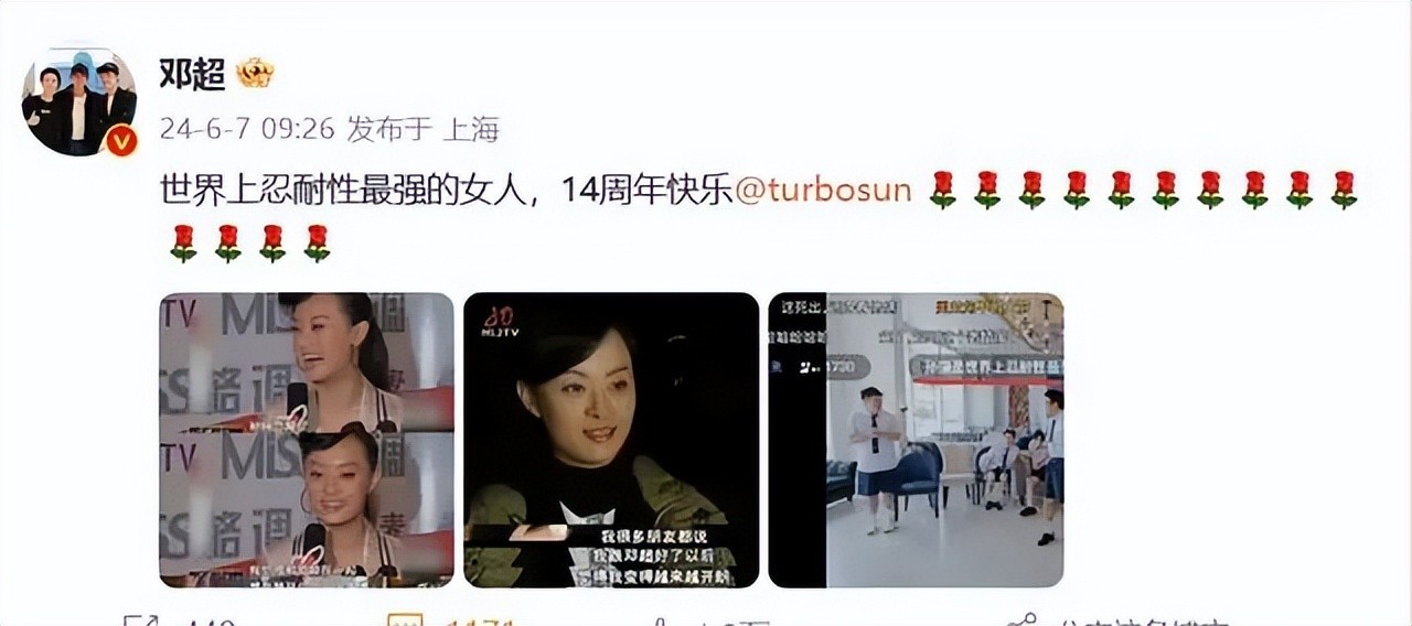 2024年6月7日,邓超孙俪发文庆祝结婚14周年。