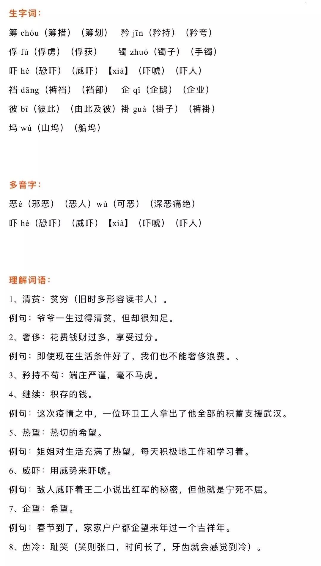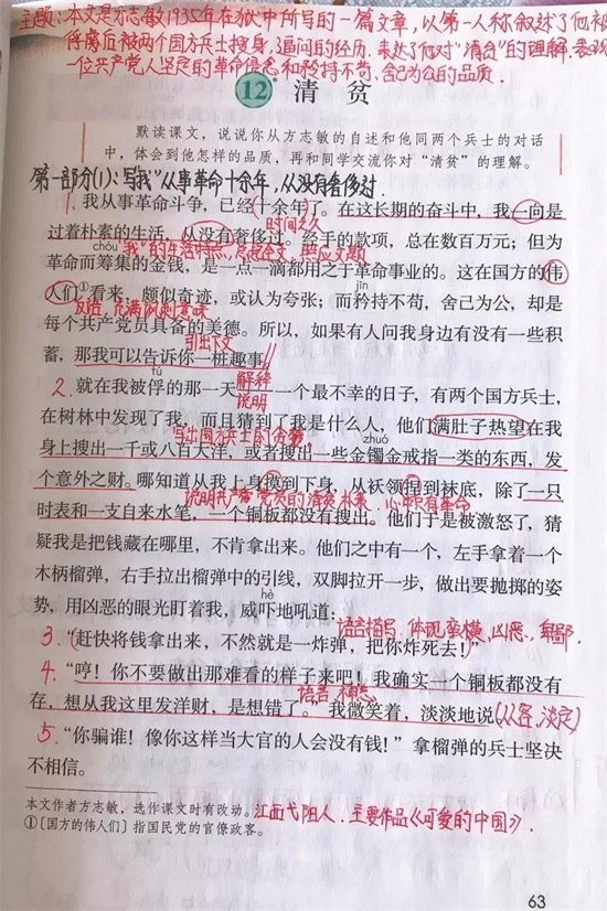 五年级语文下册十二课《清贫》课文笔记,孩子预习的好帮手