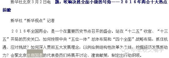 细心朋友会发现,上面三个句子都是一样的。那么,出处在哪?难道原文也错了?嚼字哥经查询发现,出处为新华网《新华社北京3月2日电 题:吹响决胜全面小康的号角——2016年两会十大热点前瞻》。当然,原文中“共商国是”并没有用错。