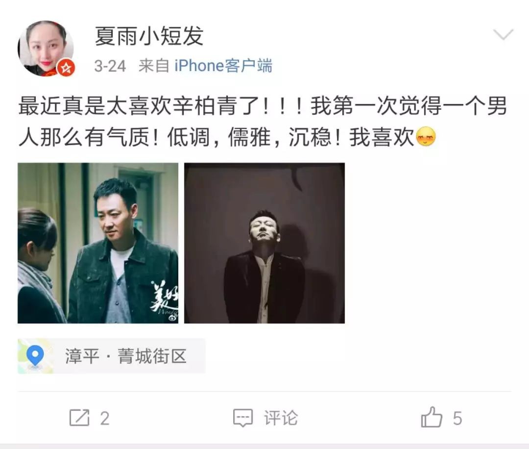 到了现代戏里,辛柏青也能拿捏得当,儒雅、低调、沉稳,有气质,很快俘获一大波粉红少女心。