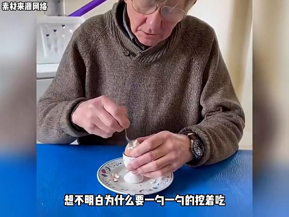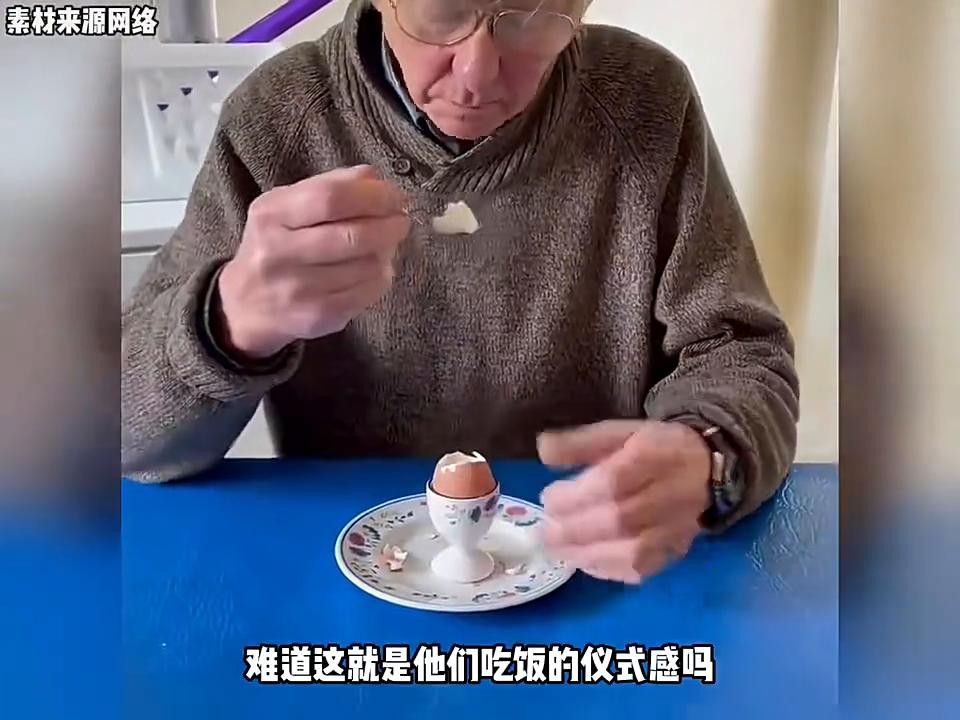 ·条件好的时候,一餐会是一个溏心鸡蛋,加上一个干拌面包。它的经典在于鸡蛋放在鸡蛋托里,鸡蛋托放在盘子上,盘子放在桌垫上,然后把面包放在桌垫上,抹上黄油,再搭配溏心蛋吃的时候,他还把面包切成条,蘸着没煮凝固的鸡蛋吃。原来他也知道这面包干巴。不过老头每天这样也挺好,最起码能省下不少燃气费。