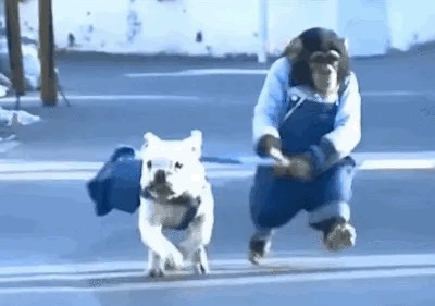 狗子:冲呀冲呀!加速前进! 猴哥:慢点慢点跟不上了