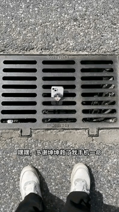 干嘛不先捡手机呢,这下好了,掉进去了!