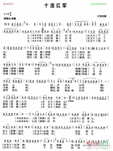 一首《十送红》把老百姓依依惜别红军亲人时那种无奈,不舍,痛苦和无助,表现的淋漓尽致!表达了我们的老百姓 ,我们的人民群众对红军从心里的认同和热爱,以及对红军未来的担忧,展望与期盼!就是希望红军能够度过难关,平安转移,平安突围,早日打败反动当局,早日平安归来,再为我们老百姓撑腰壮胆,为我们老百姓打天下!