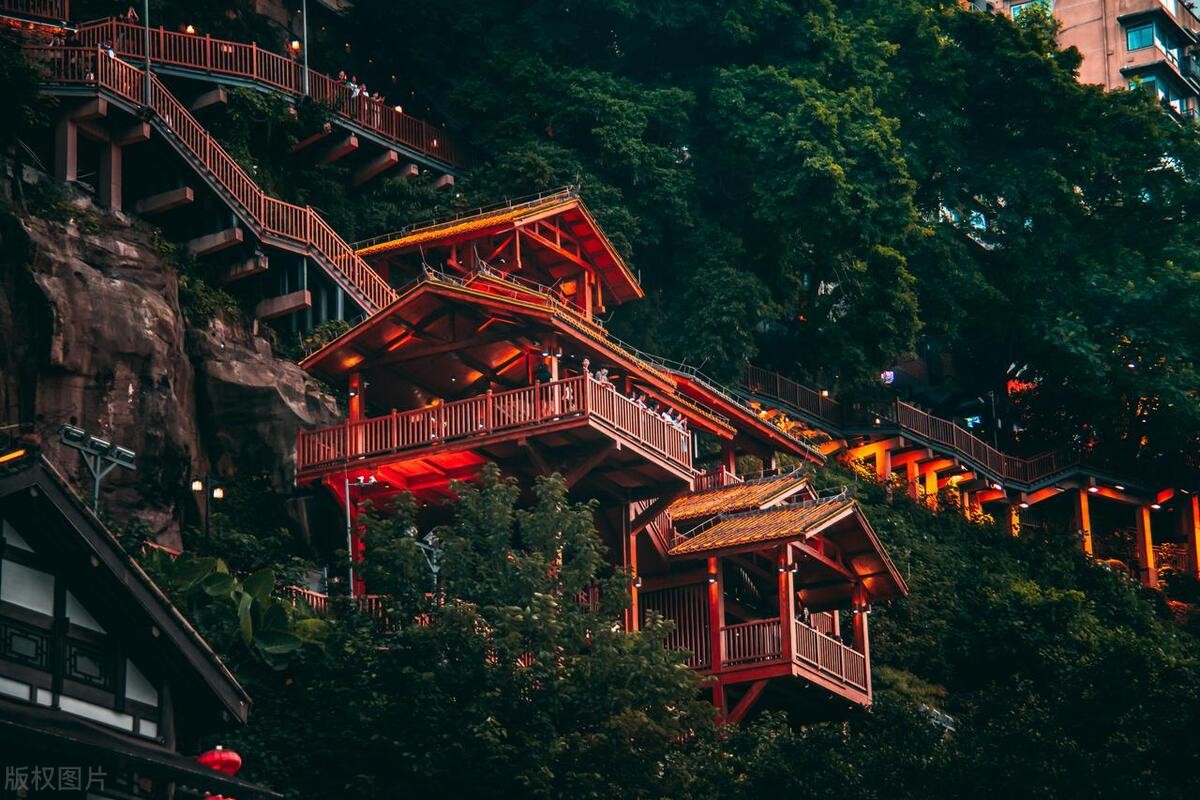 首先,我们来到了重庆的标志性景点——洪崖洞。这座位于嘉陵江畔的悬崖上的吊脚楼群,仿佛是悬挂在山崖上的艺术品。夜晚时分,洪崖洞的灯火辉煌,宛如一座璀璨的宝石宫殿,让人流连忘返。