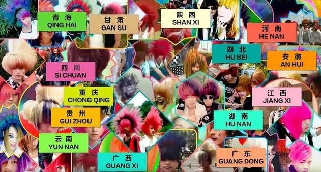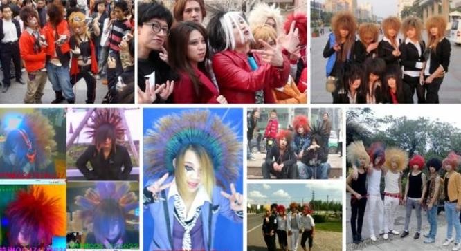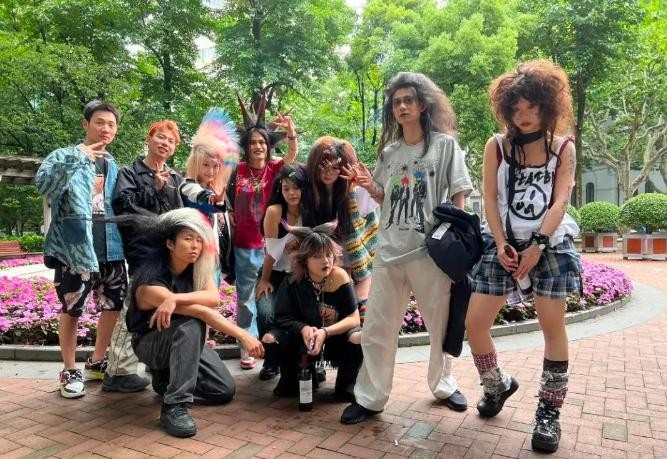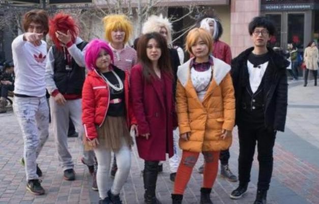 杀马特成员的特点非常显眼,五颜六色的夸张发型加上烟熏妆,看起来非常朋克。