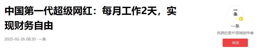 一条2025.2.26——中国第一代超级网红:每月工作2天,实现财务自由