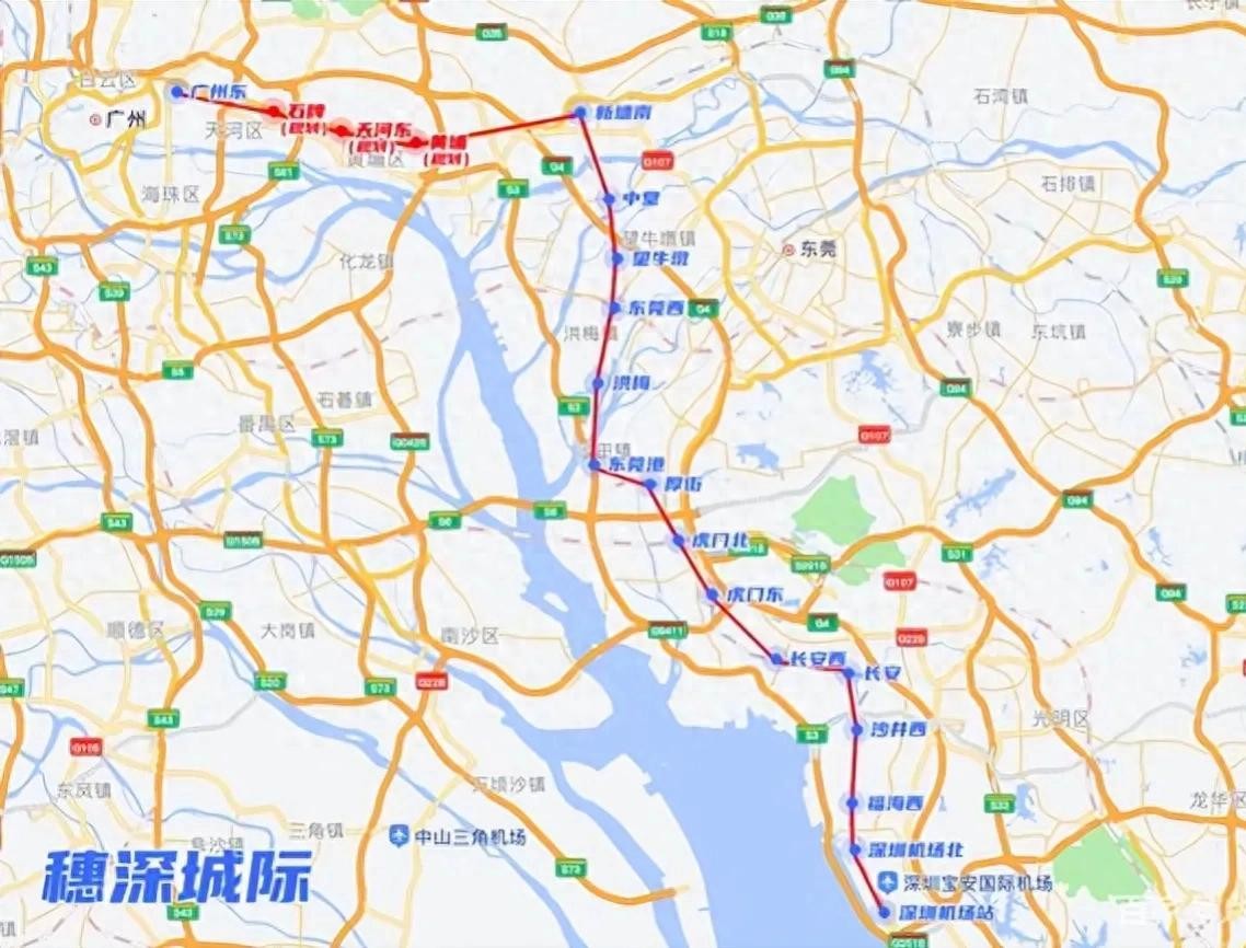 穗莞深城际机前段线路示意图(以实际建成为准)