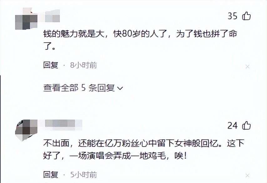 难道汪明荃真的如大家所说,她就算顶着80岁高龄的风险,都要出来办演唱会捞钱吗?