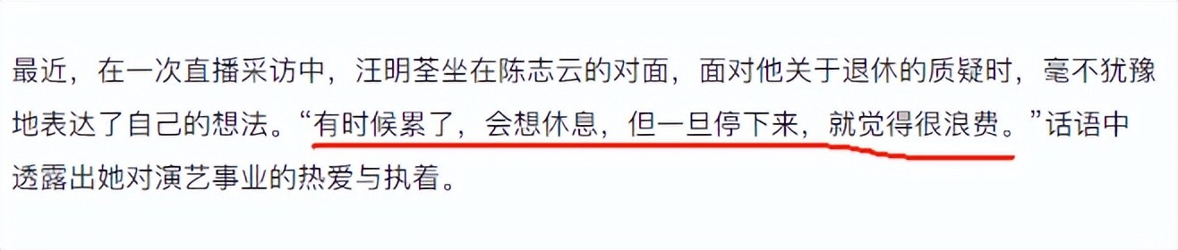 早在之前,71岁的汪明荃接受采访时,就曾表示自己绝不会退休。