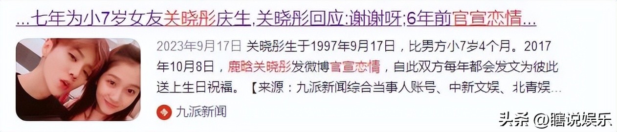 消息来源:2023年09月17日一九派新闻一鹿晗连续七年为小7岁女友关晓彤庆生,关晓彤回应:谢谢呀;6年前官宣恋情:大家好,这是我女朋友