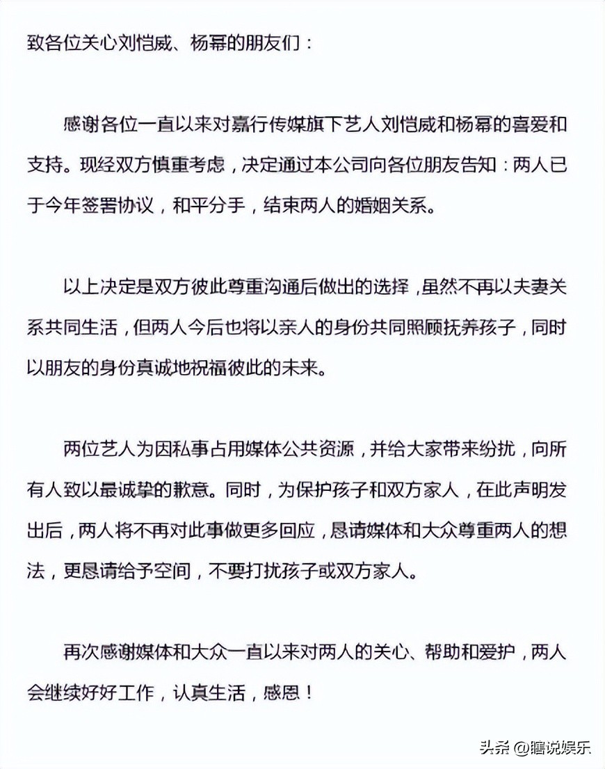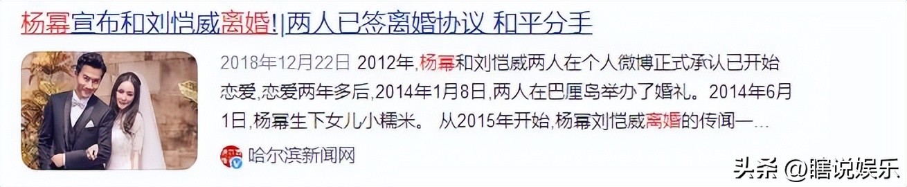 消息来源:2018年12月22日一哈尔滨新闻网一杨幂宣布和刘恺威离婚!|两人已签离婚协议 和平分手