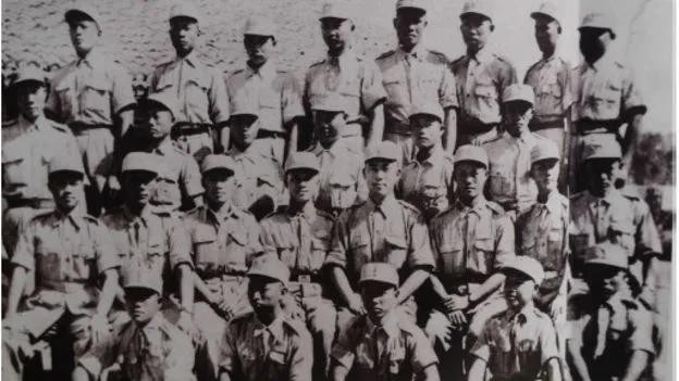 郝柏村(中排左五)担任炮兵连长时与全连官兵摄于印度