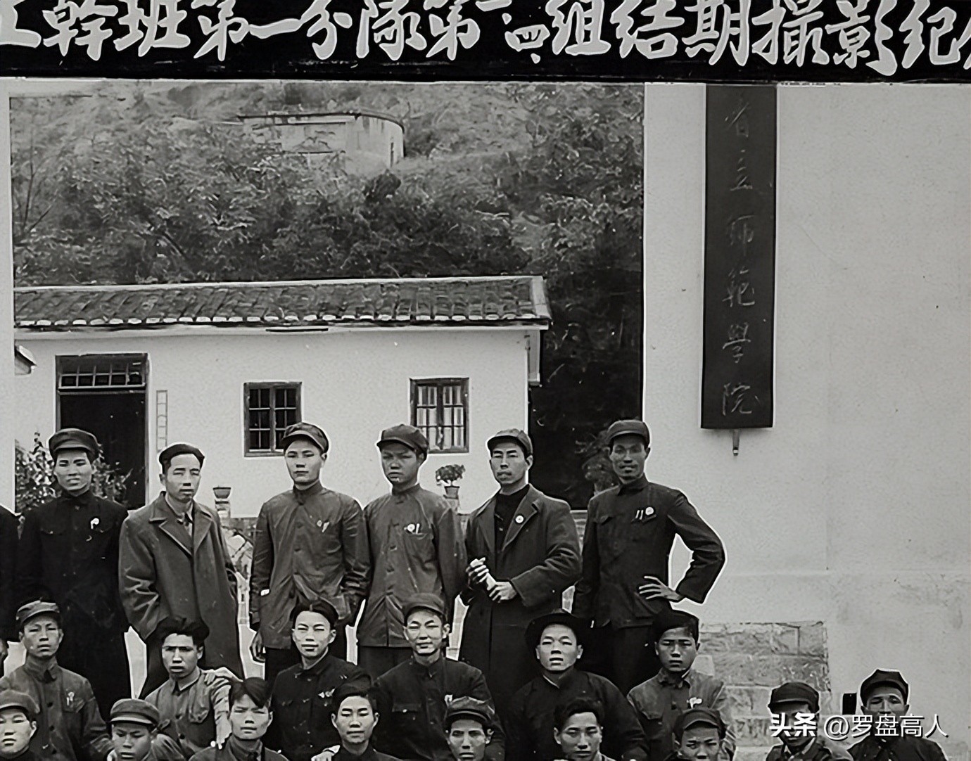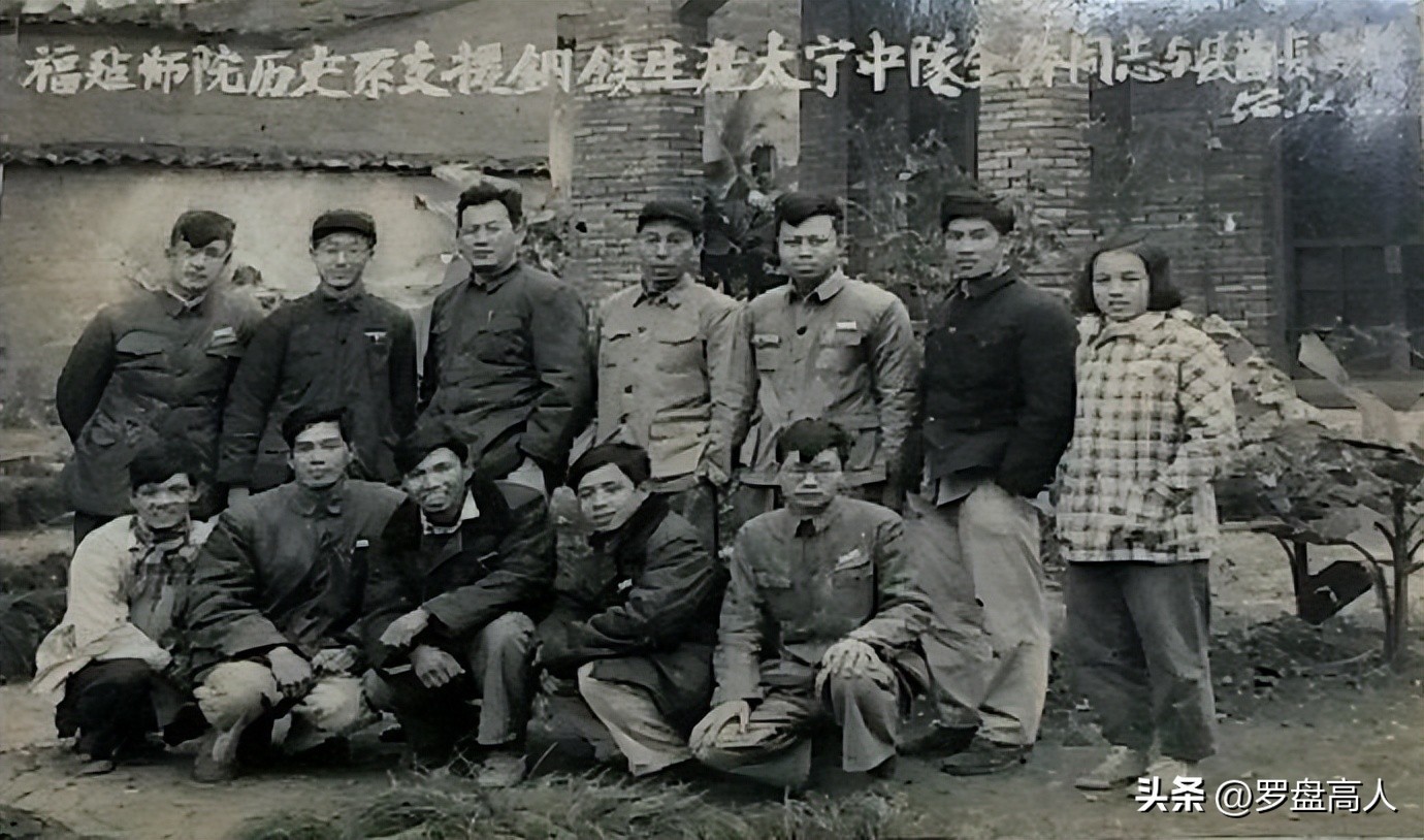 1958年,福建师范学院历史系支援钢铁生产太守中队全体同志与县首长留影
