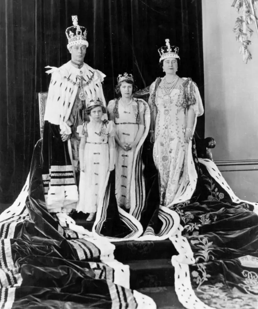 伊丽莎白公主、她的妹妹玛嘉烈公主和母亲参加父亲乔治六世的加冕典礼