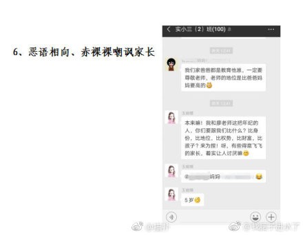 近日网友在微博爆料投诉,百色市实验小学三年级蒋姓班主任不仅对孩子做出脚踢、打脸等暴力行为,还会采用孤立孩子这样的冷暴力伤害孩子身心;让家长带孩子进她指定的培训机构,否则就给孩子做出多布置作业扣分等“穿小鞋”行径;在群里售卖自家红糖产品牟利,指桑骂槐那些“不积极”的家长,威胁说“你骂我,我责问你小孩,你骂我,我骂你小孩,我是大人,心理承受得住,但是我骂你小孩,就怕他受不住!