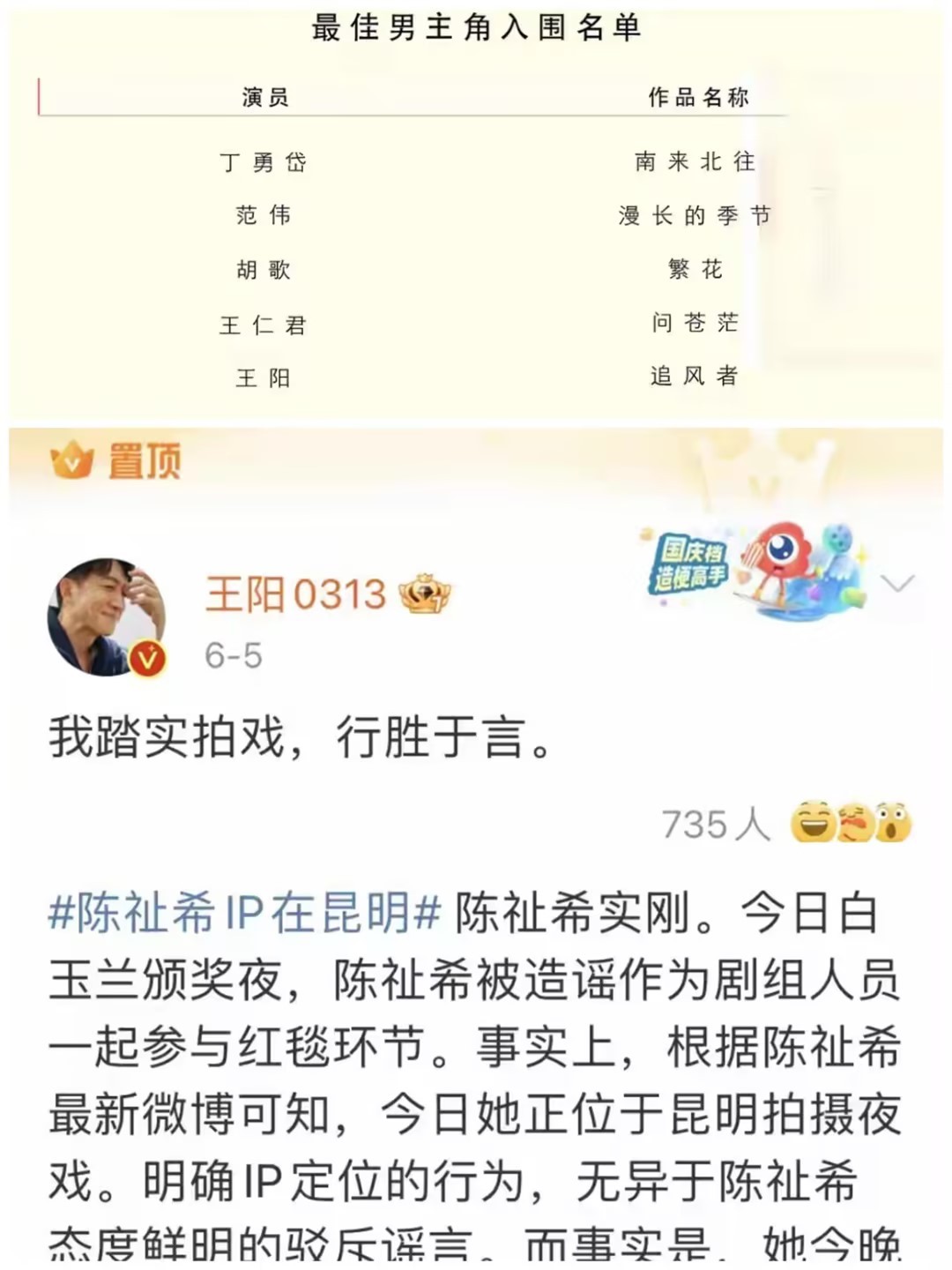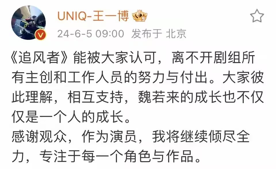 此事件在爱奇艺6月5日携演员含糊其辞的声明,和制片人陈祉希和稀泥的道歉中不了了之,而从头到尾,只有王一博对剧组和观众表示了感谢。