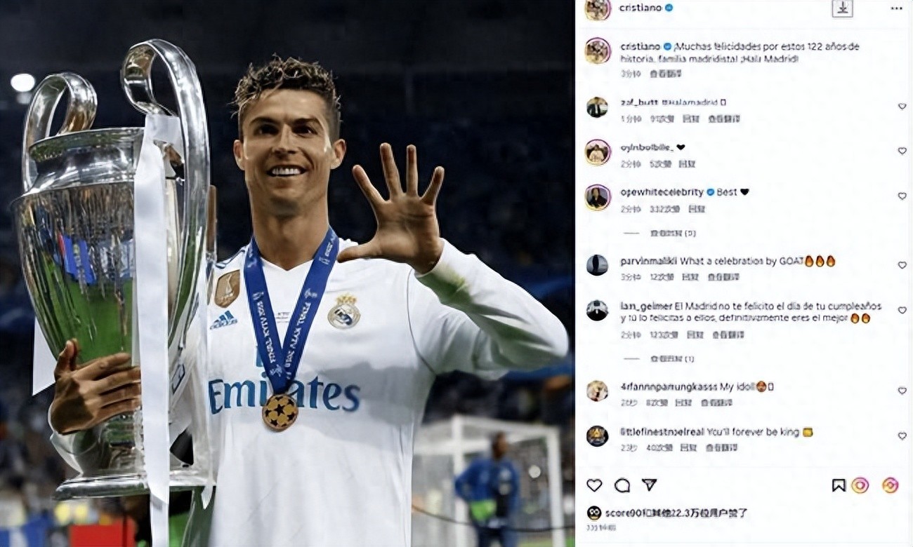 C罗社交媒体庆祝皇马建立122周年 致所有的美凌格