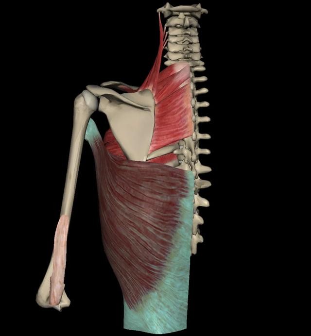 背阔肌起于下6个胸椎棘突、全部腰椎棘突、骶中嵴、髂嵴外侧唇后三分之一及以3.~4个肌齿起于下3~4个肋骨外面。止于肱骨小结节嵴,其作用是使肱骨后伸、旋内及内收。支配神经是胸背神经。由于起点较多,且与多组肌肉拮抗,损伤后症状较多,需详细鉴别,受伤原因多为上肢的剧烈活动,如游泳时上臂的拍打,打篮球时的抢球动作,身体如果有长期不缓解的肌肉疼痛,超过三个月最好找正规医疗机构就诊