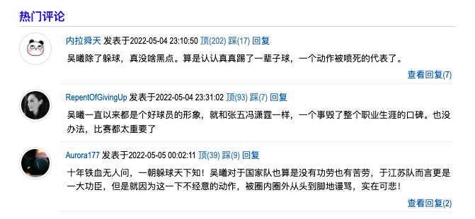 这次记者晒出了相关的照片之后呢,多少为吴曦赢得了口碑,网友们表示:“吴曦除了躲球,真没啥黑点。算是认认真真踢了一辈子球,一个动作被喷死的代表了。”“吴曦一直以来都是个好球员的形象,就和张五冯潇霆一样,一个事毁了整个职业生涯的口碑。也没办法,比赛都太重要了。”“十年铁血无人问,一朝躲球天下知!吴曦对于国家队也算是没有功劳也有苦劳,于江苏队而言更是一大功臣,但是就因为这一下不经意的动作,被圈内圈外从头到脚地谩骂,实在可悲!”“江苏的吴队挺好的,真的!当了国足的队长毁了他,本人真的挺不错的。”