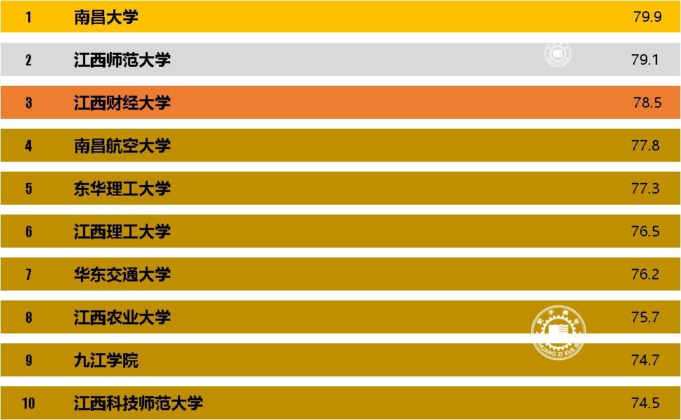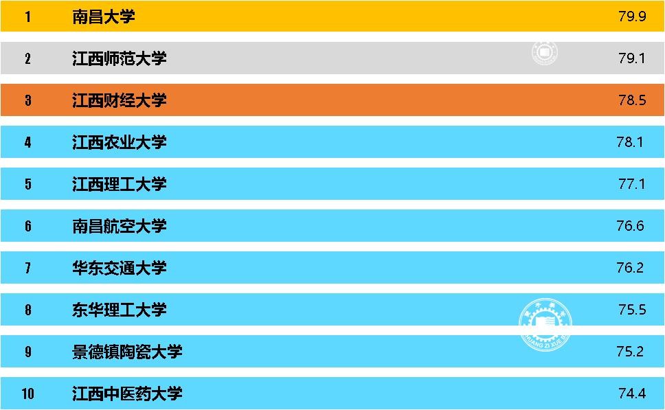 江西省综合实力最强的大学排在第一的是南昌大学,排在第二的是江西师范大学,排在第三的是江西财经大学。