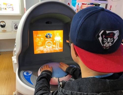 据介绍,健康机器人基于AI机器视觉的个人自我健康监测与管理系统,利用现代医学检测技术、传统中医诊断方法和移动互联网手段,对人体进行生物光电波扫描。用户只需将手放入机器人触柄,短短两分钟后,就能对人体整体各组织、各器官功能进行全面监测,帮助人们自助、无创、快速、精确地监测身体健康状况。