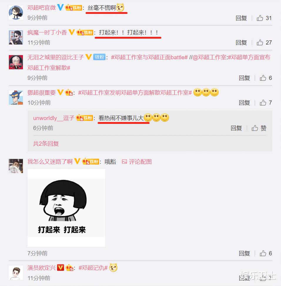 9月23日,邓超工作室改正了邓超的41岁的话题登上热搜,显然邓超也关注到该消息,于是便发文回应此事,并且再次带话题“邓超工作室解散”,对此工作室也随后进行了回应,表示:“邓超单方面宣布邓超工作室解散”,如此回应引发网友大笑,不得不说这样的回应真的非常绝。对此不少网友也调侃:“丝毫不慌啊”,“打起来打起来”,非常有趣。