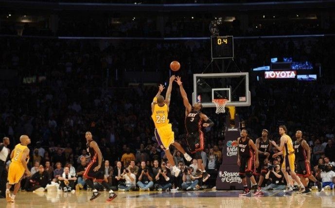 科比生涯中最伟大的绝杀之一,在闪电侠韦德的头上命中飘逸三分!