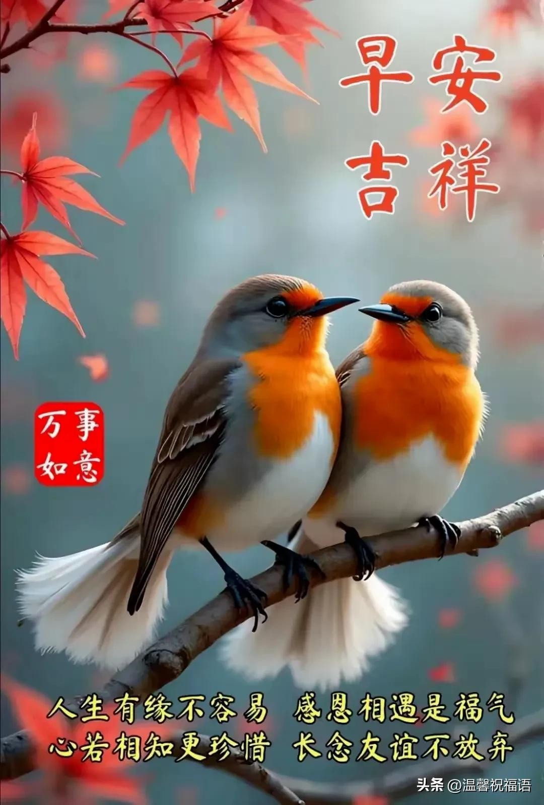 13、老来才知岁月短,好好珍惜人生缘。祝福彼此都平安,开心快乐每一天!早上好~
