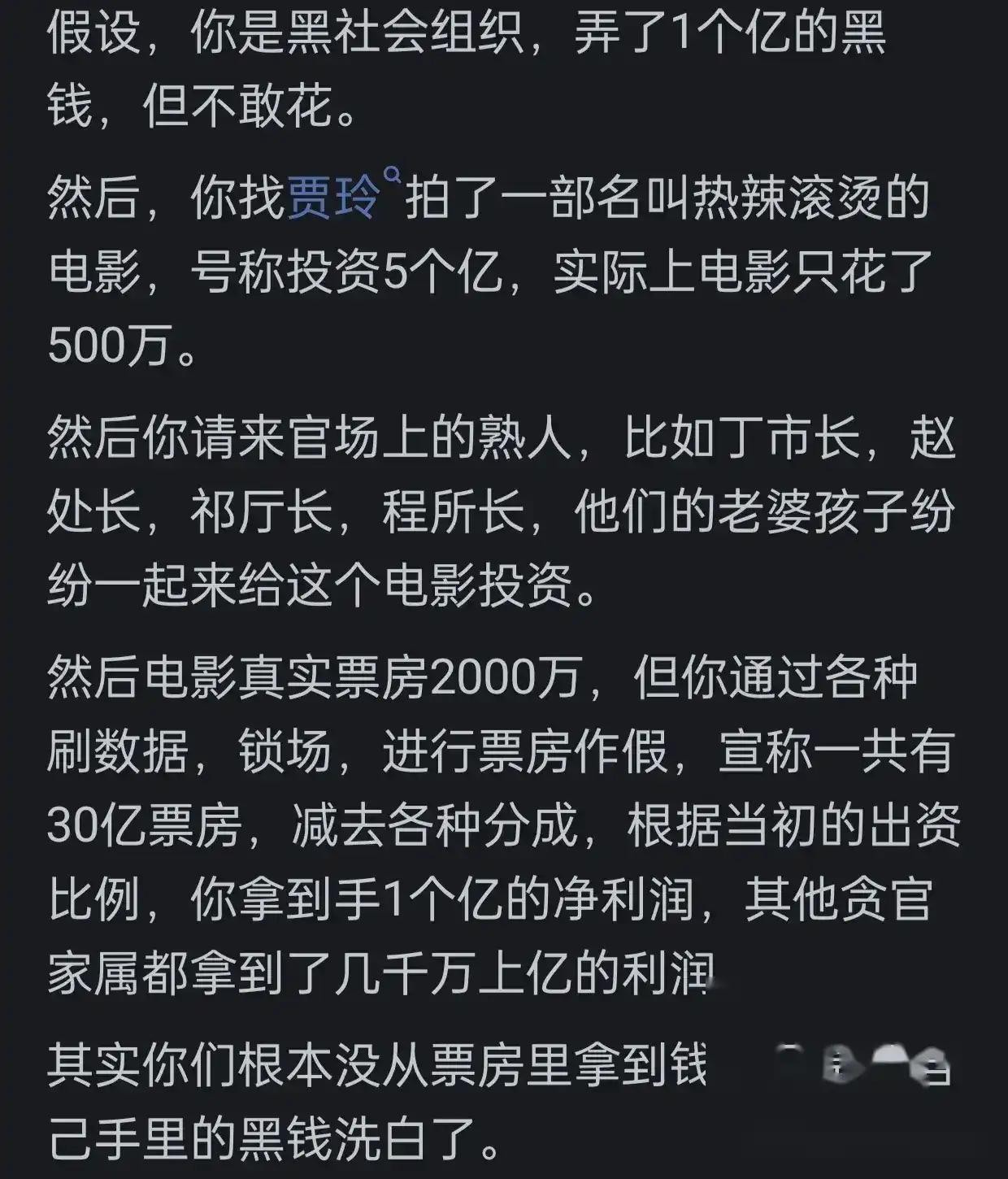 就连我们经常看的电影,也可能是在洗黑钱。因为在电影投资中,存在着大量的虚假合同和交易,而且其制作周期较长,资金的注入和回报也十分不确定,所以犯罪分子可以通过虚构的电影投资,将非法所得的资金,变成制作成本、票房收入等合法资金的流动。