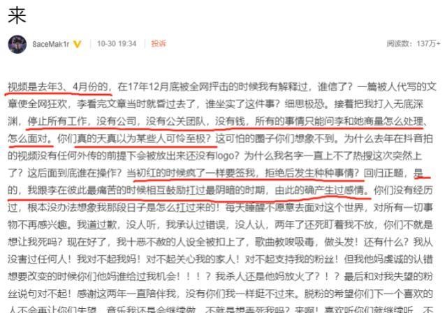 在文章的开头,我先回答一下大家的问题。视频是去年三四月份的。我之所以和达尔文混在一起,是因为当时我身处无底洞,没有钱,没有生活,非常痛苦,所以一切都得求助于李小璐。