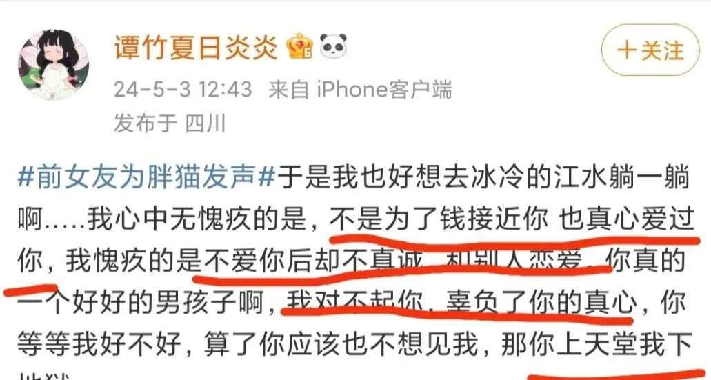 胖猫虽然离我们而去,但他的遭遇也提醒后人,不要轻易付出真心,更不要恋爱脑。