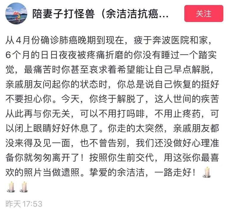 生命无常,但爱永恒。愿天堂没有病痛,愿余洁洁安息。而我们,且行且珍惜,好好活着,热爱生活,这或许就是对生命最好的致敬。