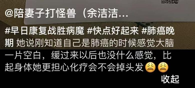 谁能想到,命运会开这样一个残酷的玩笑?2024年3月,正当余洁洁备孕二胎的时候,噩耗突然降临 - 她被确诊为肺鳞癌晚期。这个噩耗犹如晴天霹雳,瞬间击碎了这个年轻家庭的美好憧憬。