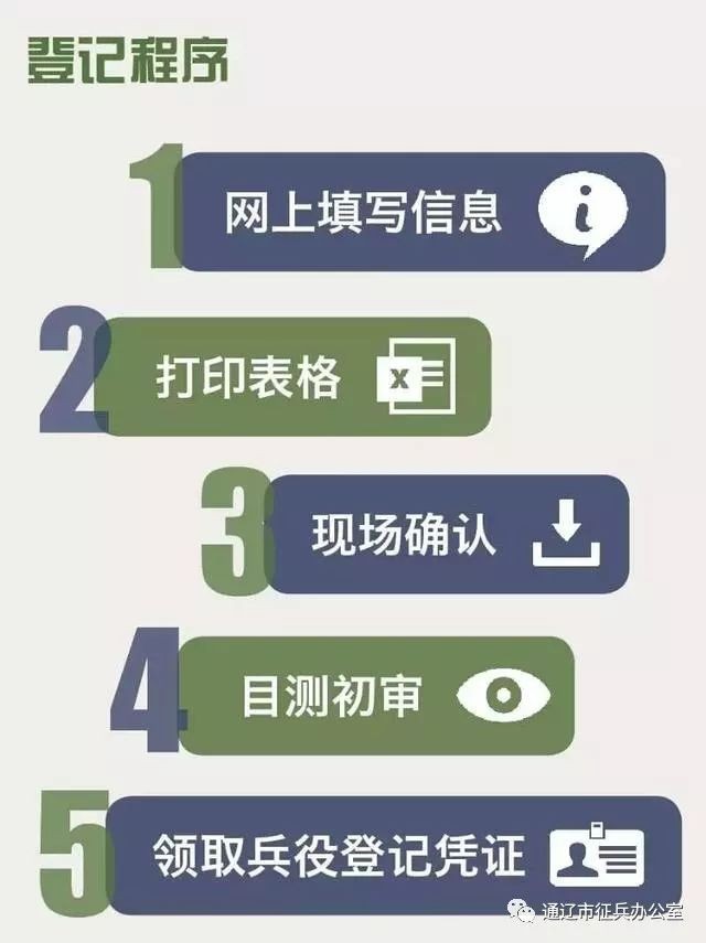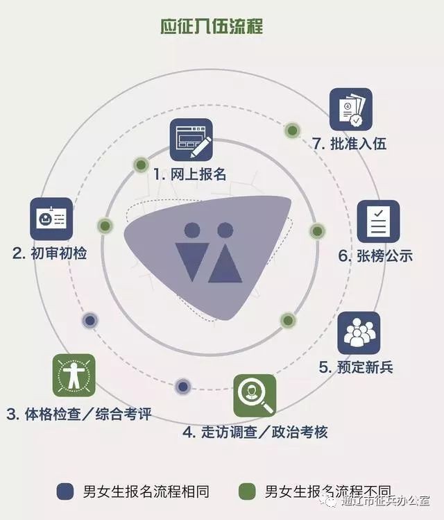 ①报名登记:1月10日—6月30日,登录全国征兵网进行兵役登记;1月10日—8月5日,登录全国征兵网进行应征报名。