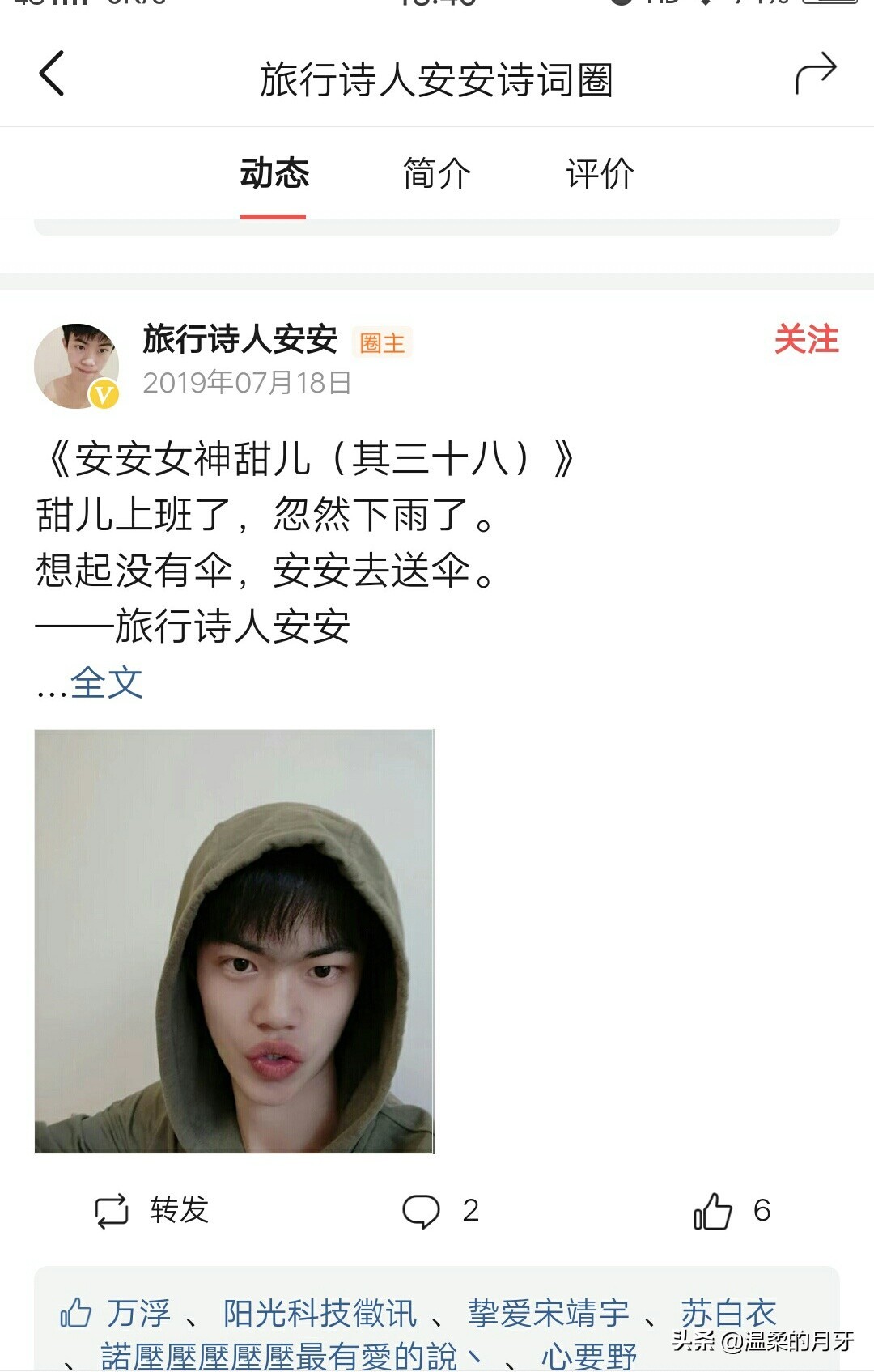 他这样出名也是醉了。嗯,挡不住网友的一片恶搞了,真是脑洞大开,有人就仿照他的模式评论,展开了接力比赛,安安家族日益强大,譬如:旅行诗人安安的姐姐、旅行诗人安安的舅舅、旅行诗人安安的二大爷……哎呀,五花八门,让人笑掉牙。