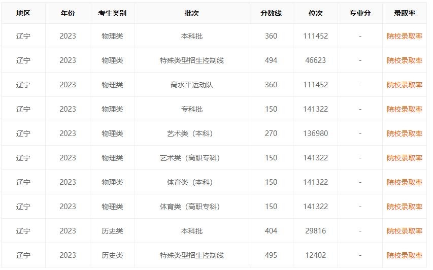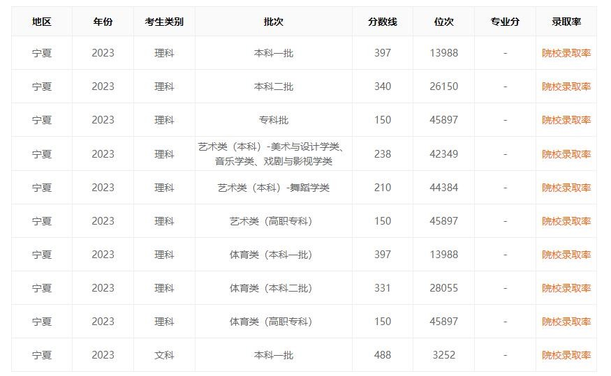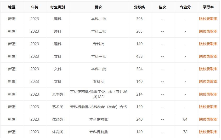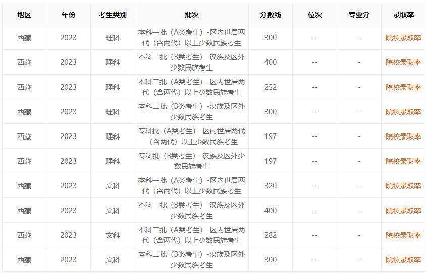 我们再看看人数比较少的省份的录取分数线