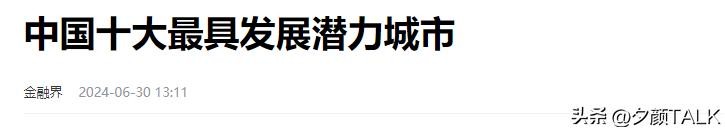 [1].官方媒体账号 金融界《中国十大最具发展潜力城市》发布时间2024.06.30