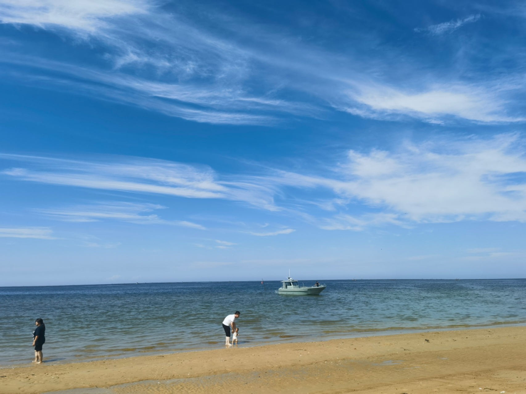 沙质细腻、海水清澈的威海国际海水浴场。