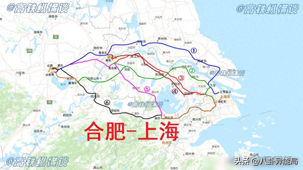 根据国家的总体规划,上海至合肥之间将有六条高铁通道建成。