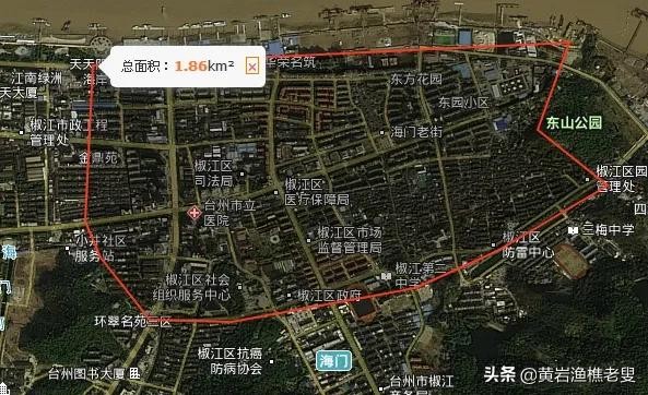 再回来看椒江市区地图,最早的椒江市只偏于一隅,刚成立的椒江市建成区,东不过东山公园,西止于凤凰山,南抵凤凰桥,北靠大江,算面积只有2平方公里。