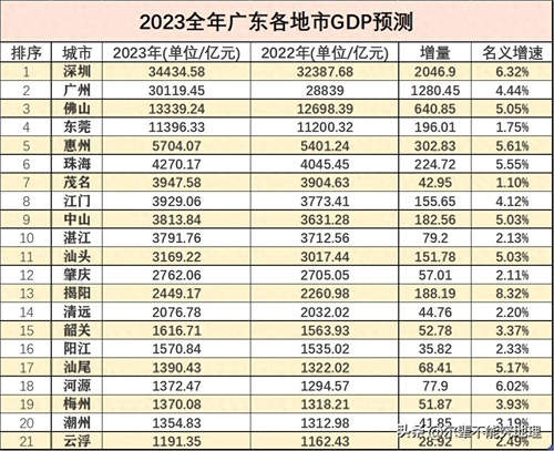 2023广东各地市GDP排名出炉;广州破三万亿,这几个城市增速明显